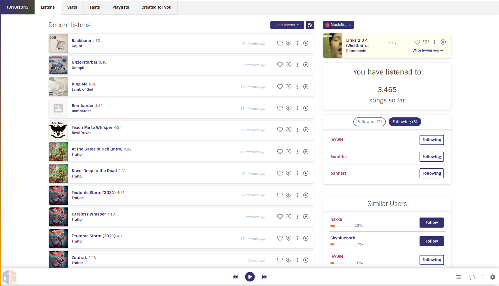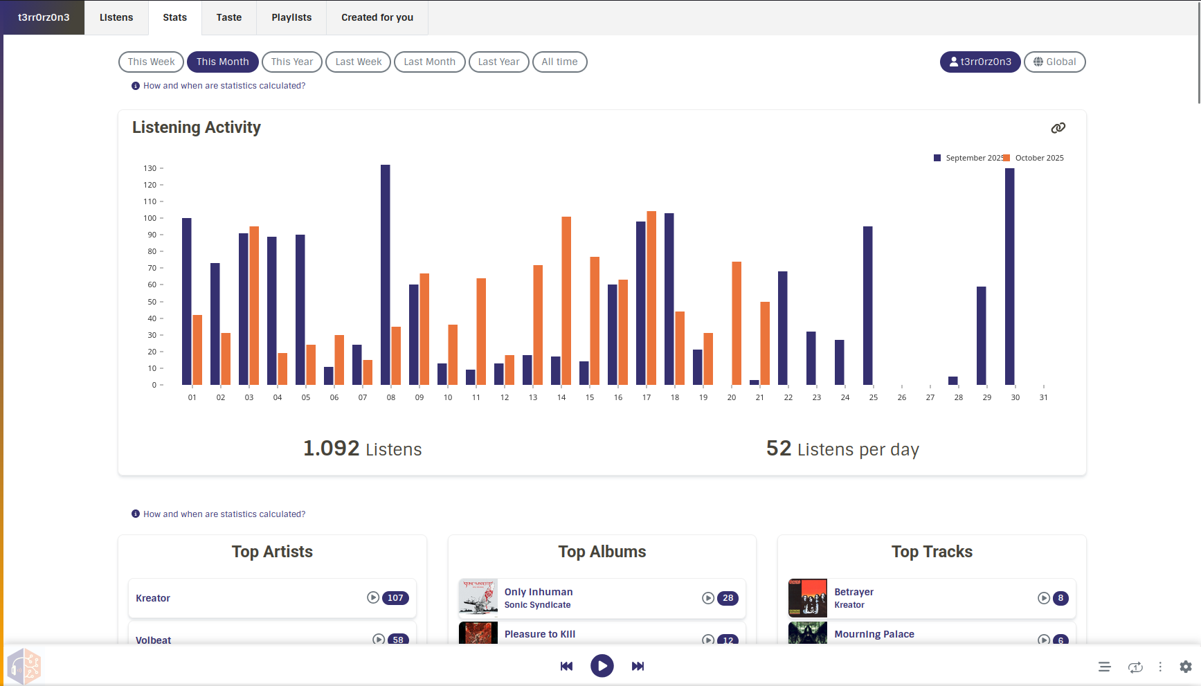 Por ejemplo, en ListenBrainz se verían las estadísticas de esta forma: